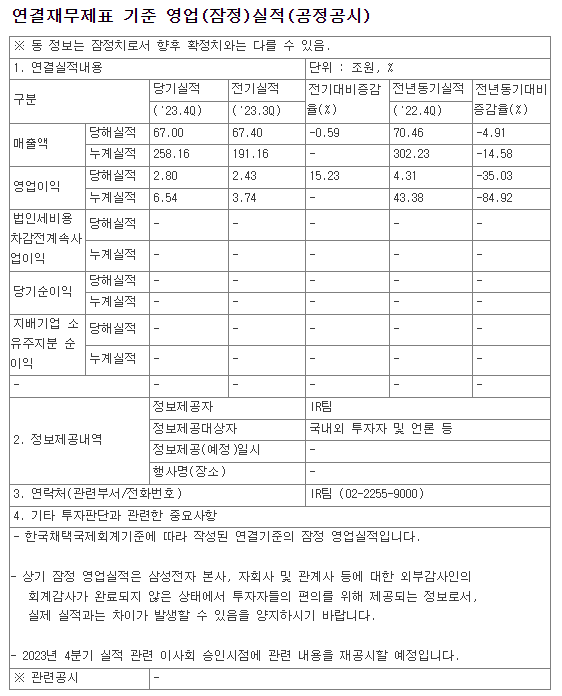 1. 삼성전자 2023년 (잠정) 실적 발표