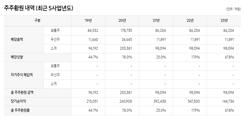 삼성전자는 지속적으로 주주 환원정책을 펴고 있으나, 배당수익률이 높은 편은 아닙니다. 미국 기업들이 주주환원에 열심인 것과 대조되는 모습으로, 향후 주주환원 정책에 좀 더 힘을 쏟을 필요가 있어 보입니다.