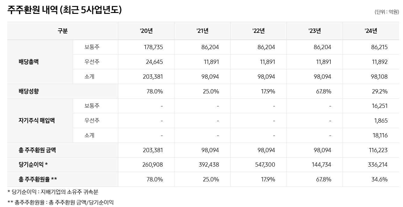 - 배당금 : 365원 (보통주) / 365원 (우선주)