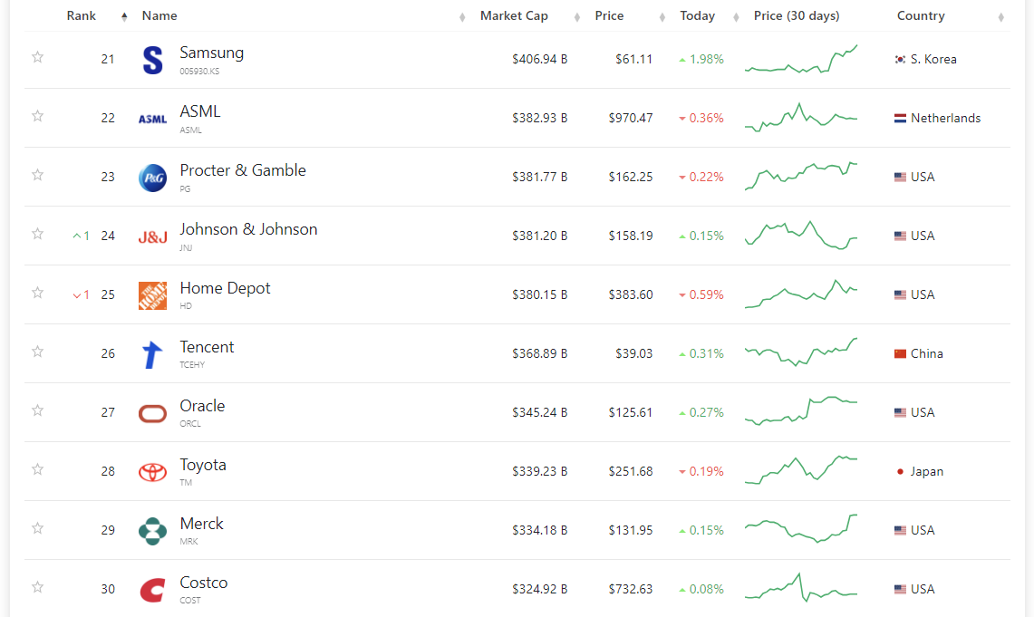 3. 세계 기업 시가총액 순위 21~30위