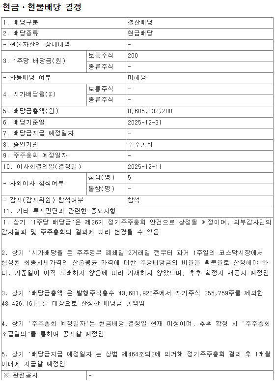 배당 조건 : 25/12/31일까지 셀트리온제약 주식 보유