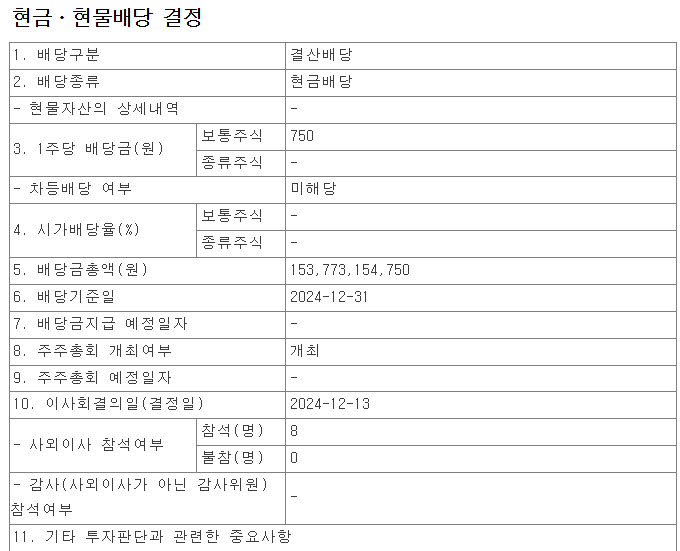 2024년 결산 배당은 현금배당 뿐만 아니라 주식배당도 실시할 예정으로, 주주들의 반응이 뜨거운 상황입니다.