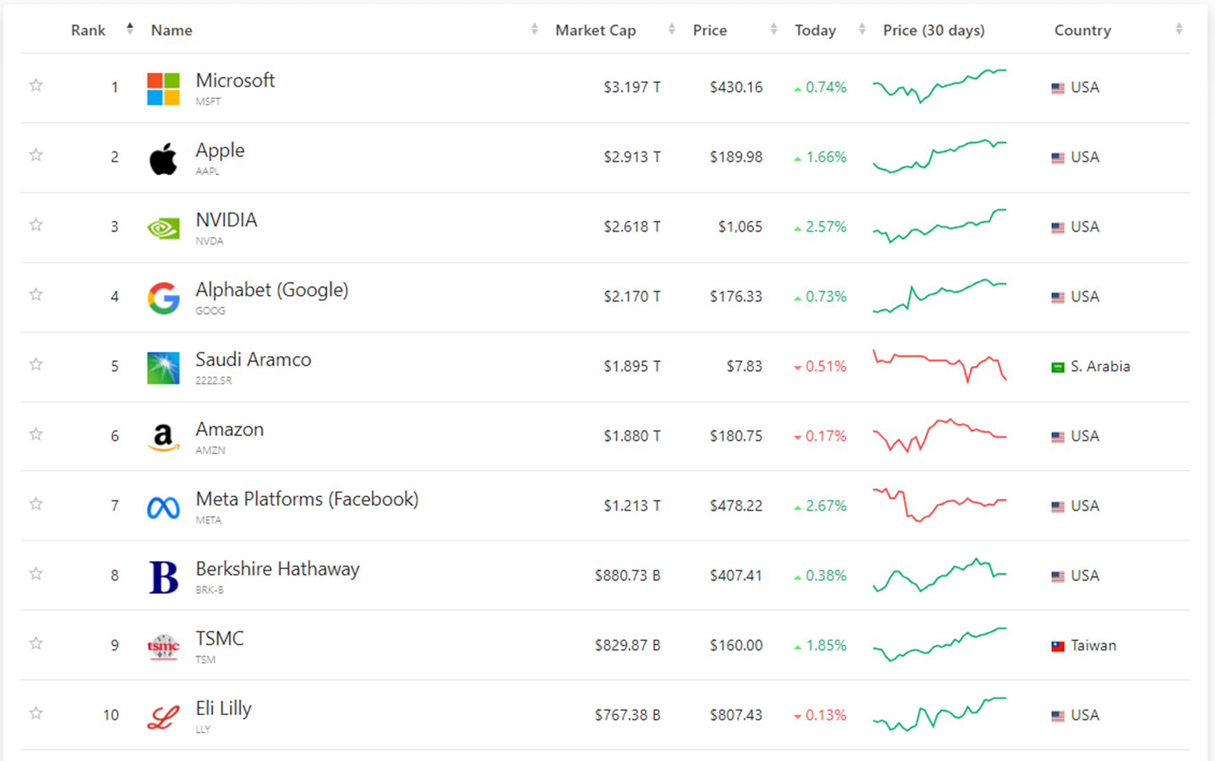 2. 세계 기업 시가총액 순위 1~10위