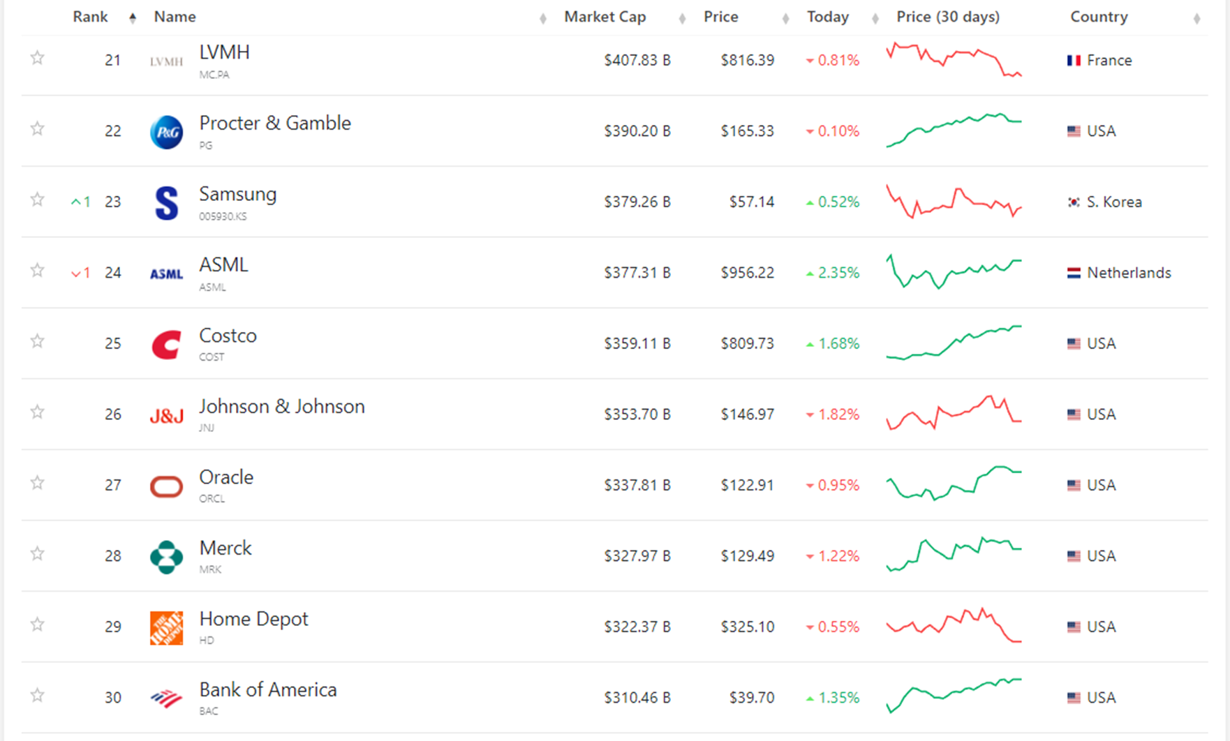 4. 세계 기업 시가총액 순위 21~30위