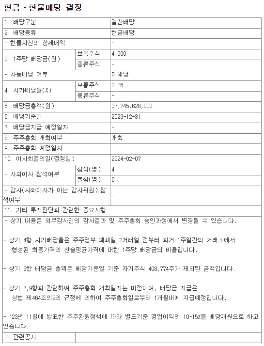 결산(4Q) 배당