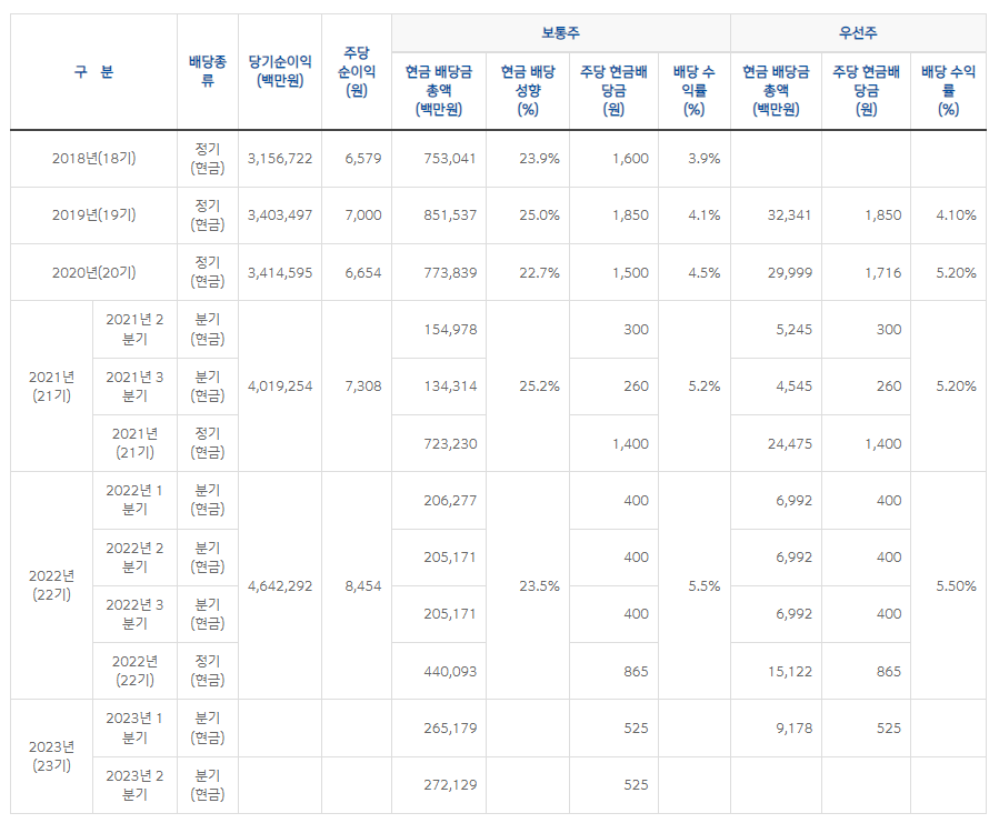 ▶ 포스코홀딩스 2023년 2분기 배당금 지급