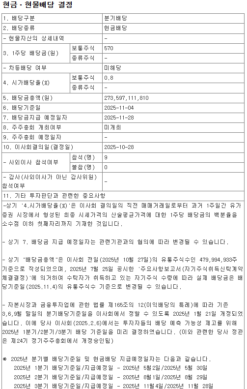 2.  2025년 3분기 신한지주 배당금