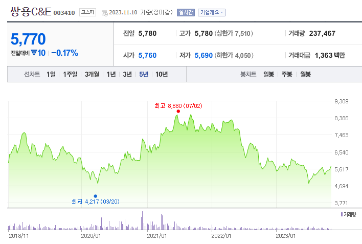 1. 쌍용C&E 주가