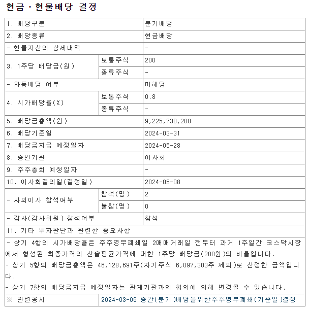 현대차, 2024년 1분기 실적 및 배당금 공시! (현대자동차, 결산, 주가, 배당일, 지급일, 배당락)