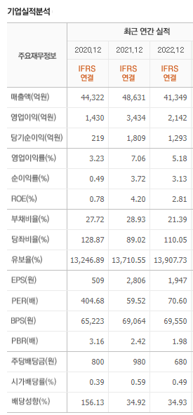 아모레퍼시픽은 지속적으로 배당금을 지급하고 있으나, 주가대비 배당율이 상당히 낮은 편입니다.