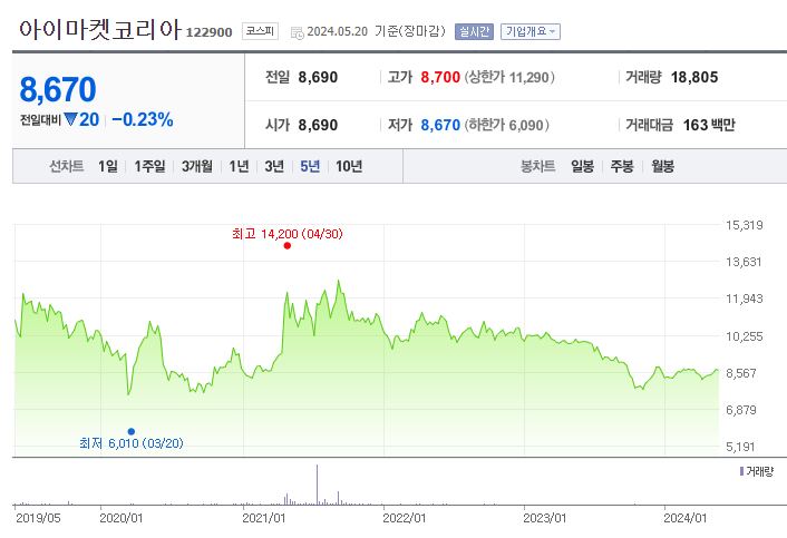 아이마켓코리아의 주가는 지난 팬데믹 시기 일시적으로 상승했던 것을 제외하면, 전반적으로 큰 변화 없이 보합세를 유지하고 있습니다.