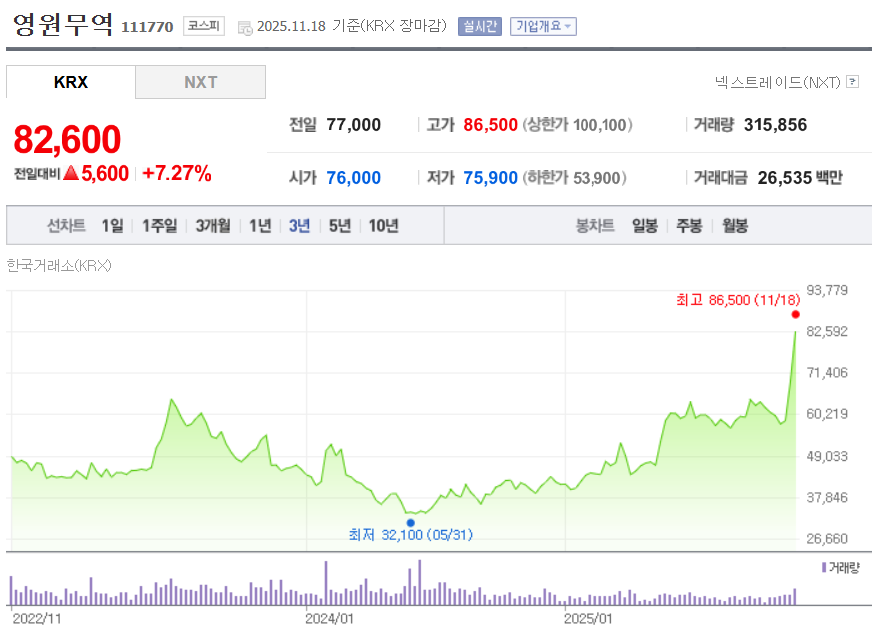 영원무역의 주가는 최근 발표된 시장 기대치를 크게 상회하는 3분기 호실적에 힘입어 급등세를 보이고 있습니다. 2025년 11월 18일 기준, 주가는 82,300원을 기록하며 52주 신고가를 경신했으며, 이는 전 거래일 대비 6.88% 상승한 수치입니다. 증권사들은 양호한 OEM(주문자 상표 부착 생산) 부문 실적과 자회사 재고 조정에 따른 적자 축소 등을 긍정적으로 평가하며 목표 주가를 상향 조정하고 있어, 주가 재평가 여력이 충분하다는 분석이 나옵니다.