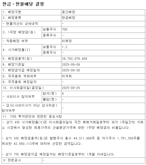 | 포스코홀딩스 2025년 3분기 배당 확정! 배당금·배당일·배당락 총정리 (0) | 2025.11.12 |
