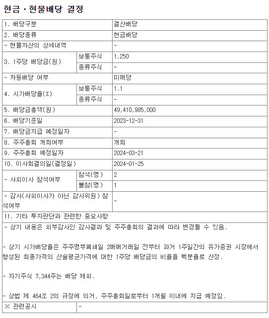 | JYP엔터테인먼트, 2023년 실적 및 배당금 공시! (엔터주, 결산, 주가, 배당일, 지급일, 배당락) (0) | 2024.04.17 |