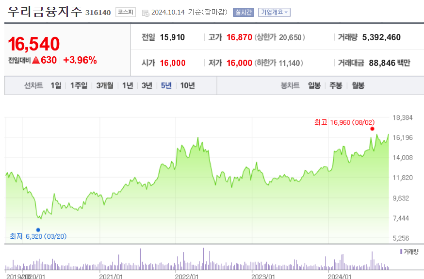 [우리금융지주 주가]