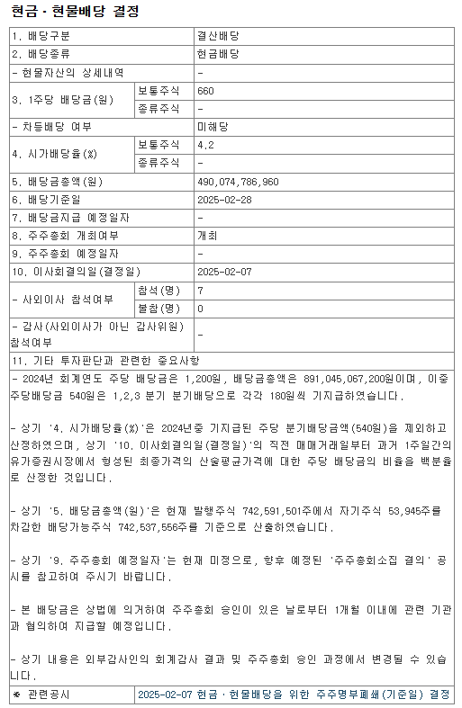 | SK(주), 2024년 배당금 확정! (중간배당, 연말, 결산, 실적, 주가, 배당일, 지급일, 배당락) (1) | 2025.02.09 |