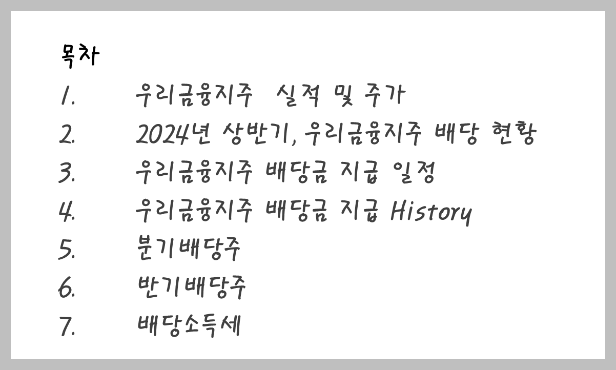 우리금융지주는 '24년에도 주주가치 제고를 위해 분기 배당을 실시하고 있습니다.