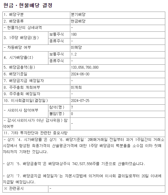 KT, 2024년 2분기 실적 및 배당금 공시!! (분기배당, 주가, 배당일, 지급일, 배당락)