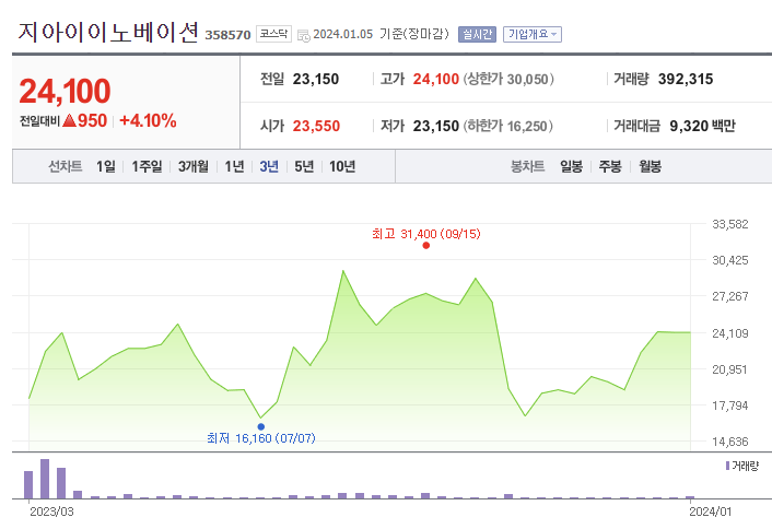 1.  지아이이노베이션 주가