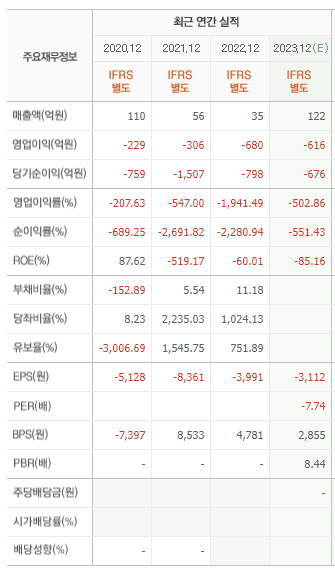 지아이이노베이션은 아직까지는 신생 회사로써, 지속적으로 적자를 기록하고 있습니다. '23년도 역시 적자를 기록할 것으로 예상되나, 회사에서는 '24년부터 매출이 신장하며 실적이 개선될 것으로 기대하고 있습니다.