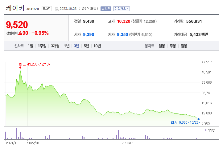 케이카 주가 (출처 : 네이버 증권)