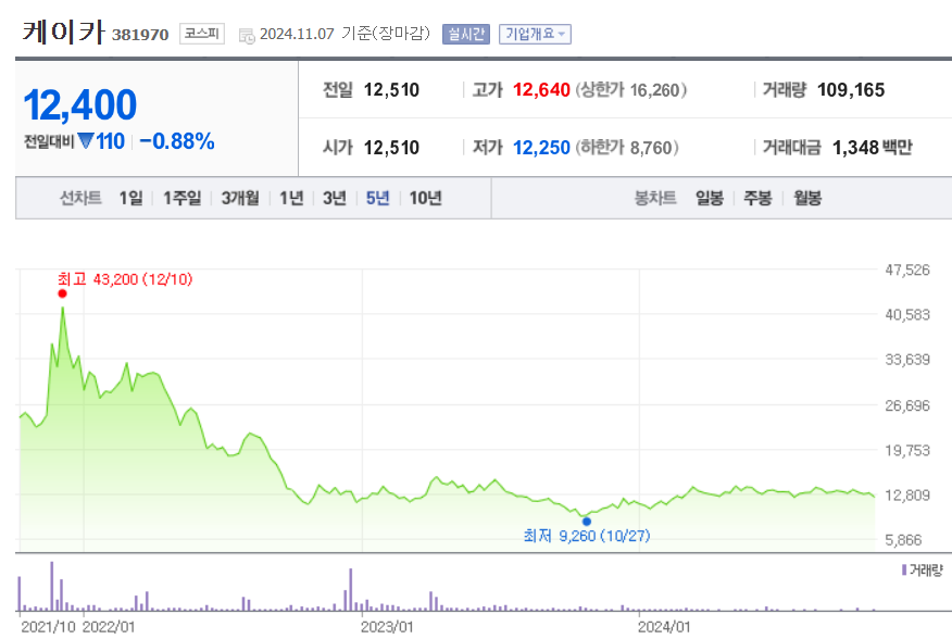 케이카는 지난 '21년 상장하여, '21년 말에 최고점을 기록한 뒤, 지속적으로 하락 후 보합세를 유지하고 있습니다. 사실 그래서 주식 자체의 매력이 크지는 않지만, 배당수익률이 괜찮은 주식이라 배당 관점에서 접근하시는 편이 좋을 듯 합니다.