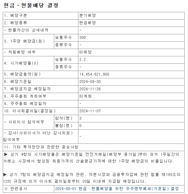 배당 조건(기준일) : 2024-09-30까지 케이카 주식 보유