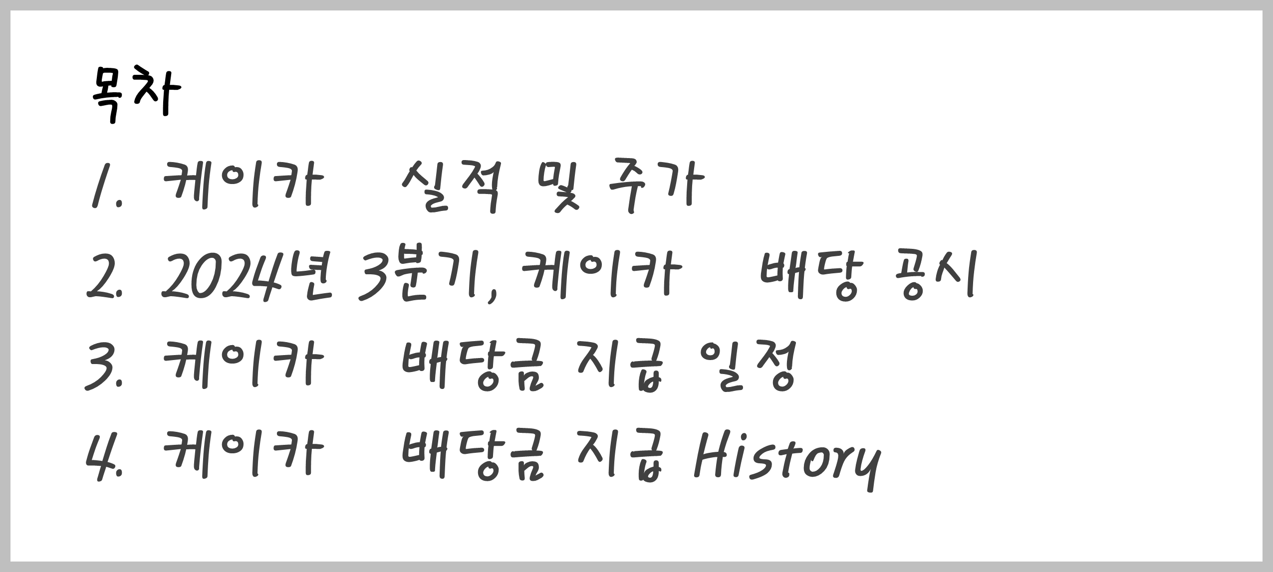 케이카는 아래 일정으로 분기 배당금을 지금합니다.