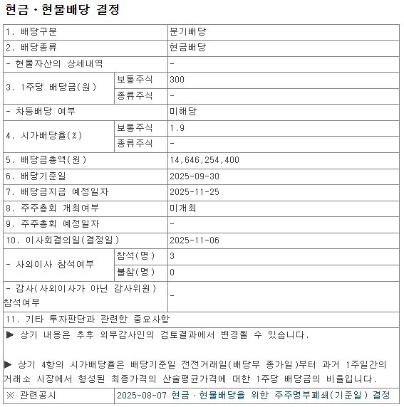 | SK하이닉스 2025년 3분기 배당 확정! 배당금·배당일·배당락 총정리 (0) | 2025.11.11 |
