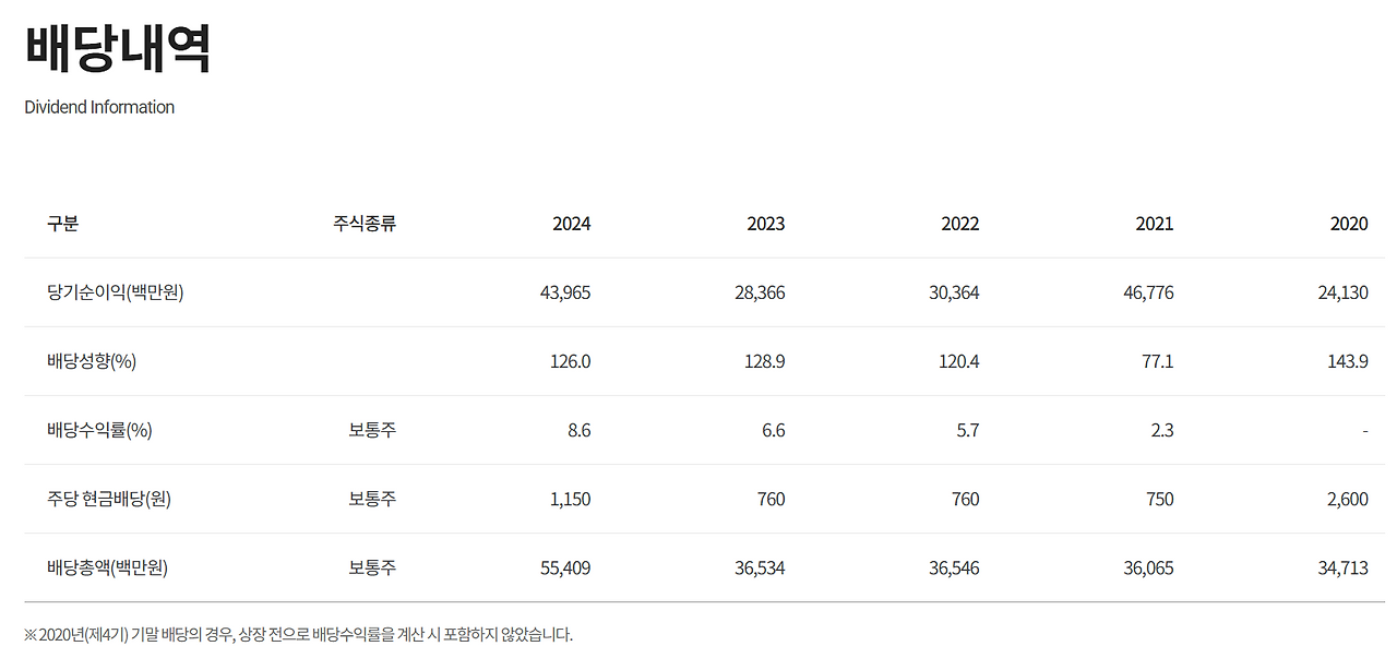 배당금 : 300원 (보통주)