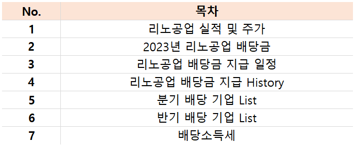 배당 조건(기준일) : 2023-12-31까지 리노공업 주식 보유