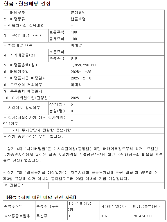 | 효성ITX 2025년 3분기 배당 확정! 배당금·배당일·배당락 총정리 (0) | 2025.11.29 |