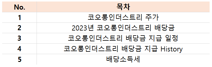 배당 조건 : 23/12/31일까지 코오롱인더스트리 주식 보유