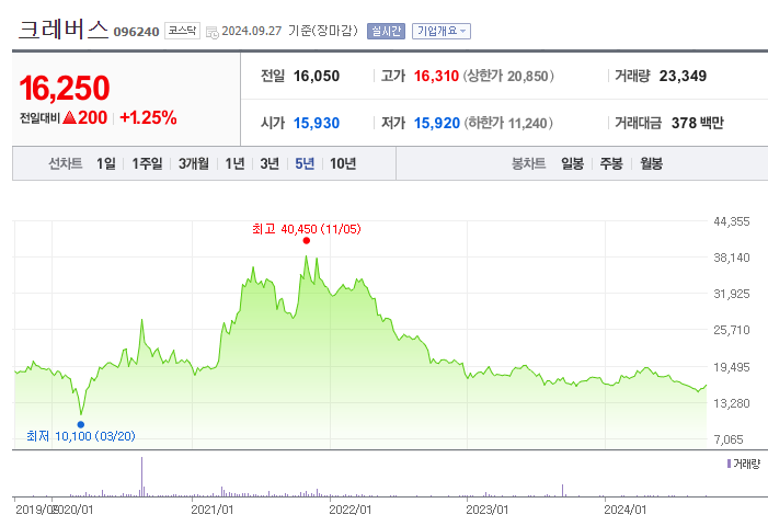 크레버스의 주가는 지난 '21년말 전고점을 기록한 이후, 지속적으로 하락 및 약보합세를 유지하고 있습니다. 이번 중간배당 금액도 줄어들면서 주가에 부정적인 영향을 주고 있습니다. 향후 어떤 모멘텀이 있기 전까지는 주가 상승이 쉽지 않아 보입니다.