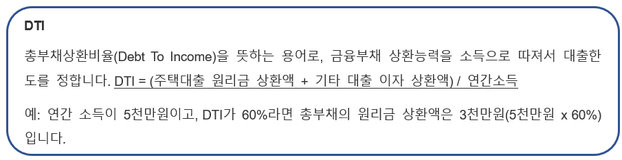 DTI는 주택담보대출 원리금에 다른 곳에서 빌린 대출금의 이자를 더해 계산