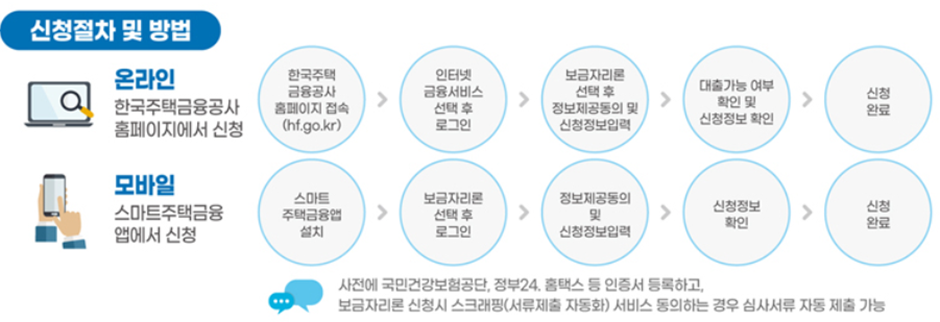 - 온라인(한국주택금융공사 홈페이지), 모바일(스마트주택금융 앱)