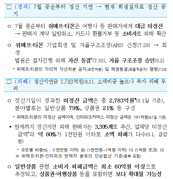 - 정산지연 피해 판매자 3,395개 업체로 추산