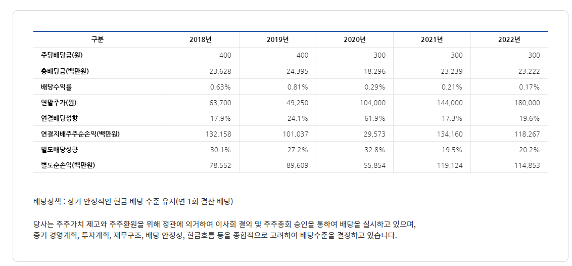 배당금 : 250원 (보통주)