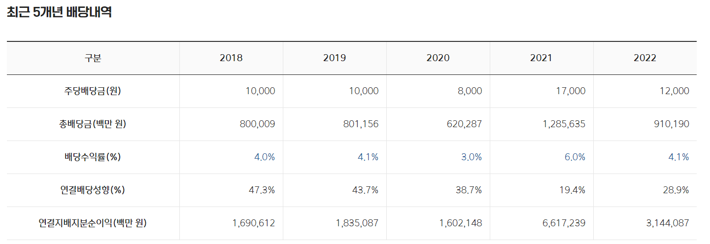 4. 포스코홀딩스 배당금 지급 History