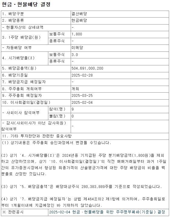 | 우리금융지주, 2024년 배당금 확정! (4분기, 연말, 결산, 실적, 주가, 배당일, 지급일, 배당락) (0) | 2025.02.07 |