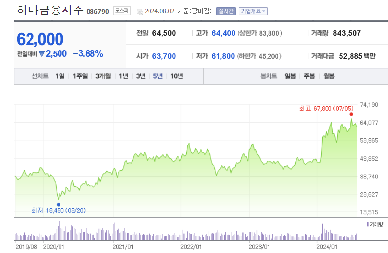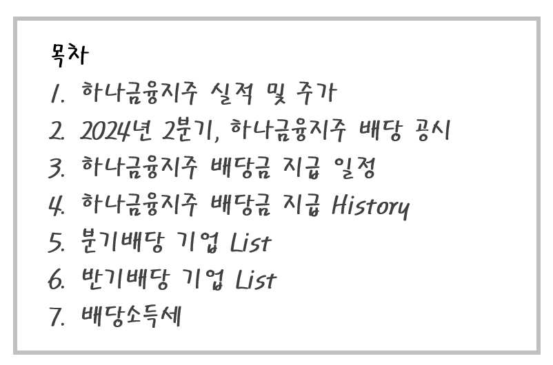 하나금융지주, 2024년 2분기 실적 및 배당금 공시!! (분기배당, 주가, 배당일, 지급일, 배당락)