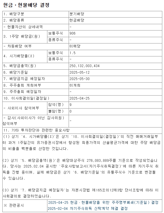 | SK하이닉스, 2025년 1분기 배당금 확정! ('25년 1Q, 실적, 주가, 배당일, 지급일, 배당락) (1) | 2025.05.17 |