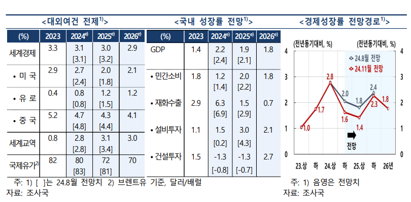 '25년은 소비를 중심으로 완만한 성장세를 이어가겠으나, 수출 증가세가 예상보다 낮아짐에 따라 연간 성장률이 당초 예상보다 낮아질 것으로 전망 하였습니다.