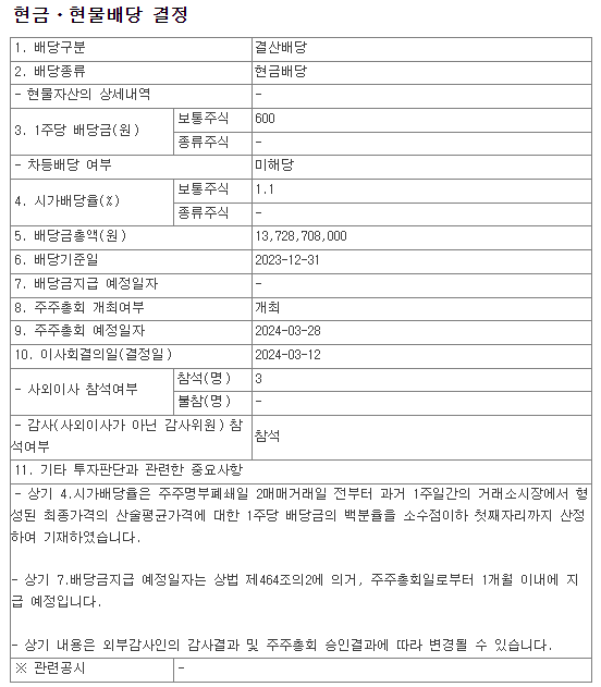 배당금 : 600원 (보통주)