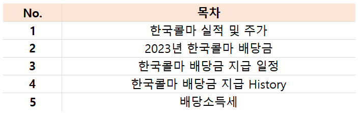 2. 2023년 한국콜마 배당금