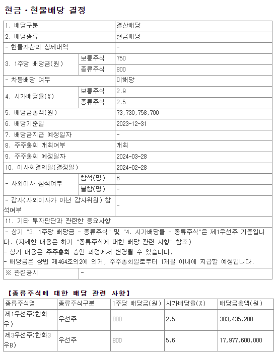 2. 2023년 한화 배당금
