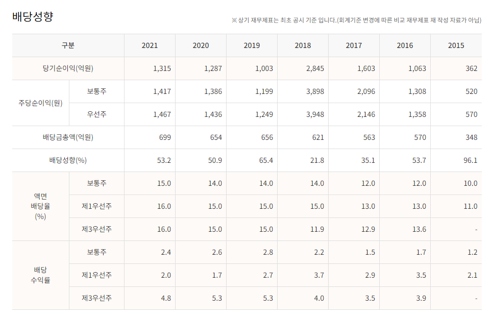 배당금 : 750원 (보통주) / 800원 (우선주)