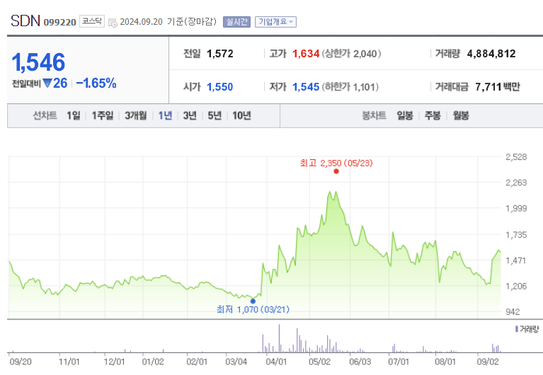 SDN 주가 (출처 : 네이버 증권)