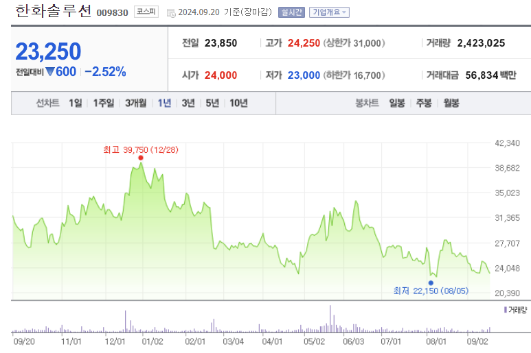 한화솔루션 주가 (출처 : 네이버 증권)