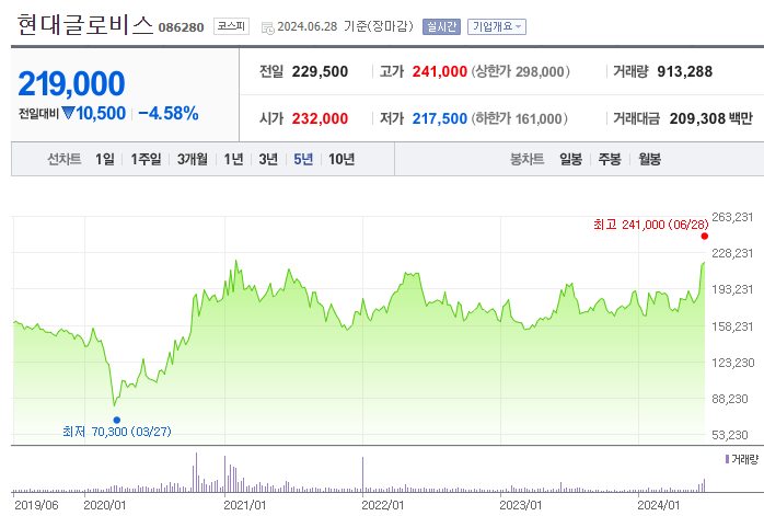 1. 현대글로비스 주가